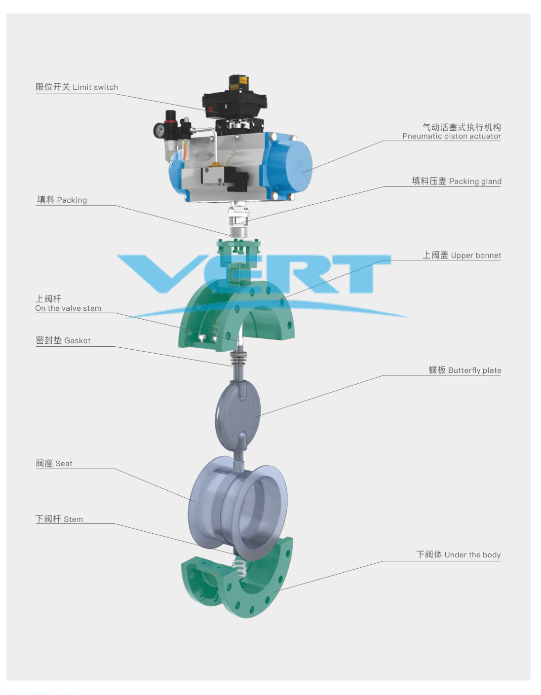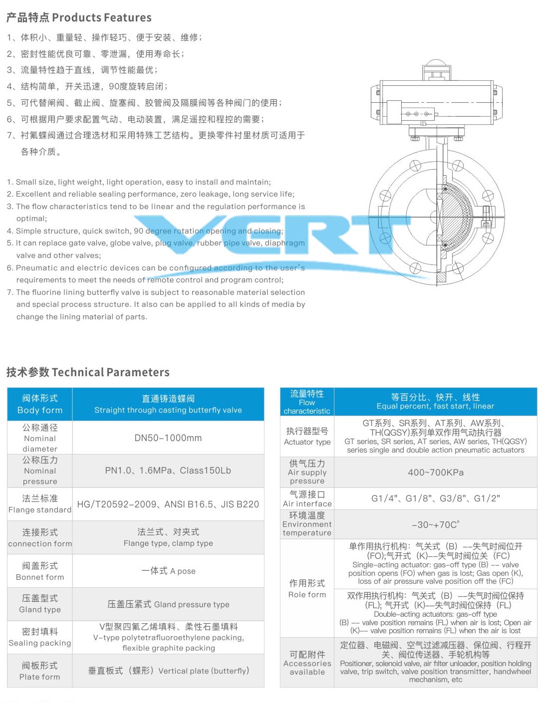 The pneumatic fluorine lining control butterfly valve is composed of pneumatic piston actuator and PTFE sealed butterfly valve.It is suitable for the situations which has certain requirement of corrosive and clean and lower than 180℃.The pneumatic fluorine lining butterfly valve is subject to lining technology to cover thick polymer material on the flow passage components, disc, valve body, and valve rod. It has excellent anti-corrosion performance and can be applied to any concentration of acid, alkali, salt, oxidant, reductant, organic solvent and other media.The pneumatic fluorine lining butterfly valve is an ideal product to be used as closure and regulation equipment on the pipe and container of gas, liquid and semi liquid in chemical, petroleum, medicine, food, iron and steel smelting, papermaking, hydropower and other systems.