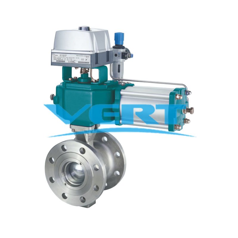 Of V-type regulating ball valve is a kind of ball valve, it shutdown a is half sphere has aV opening, v-shaped opening has a sharp edge, in the process of rotating sphere, wiping, between the closed to the media has a strong cutting force, the sphere of the v-shaped opening port to form a fan-shaped area, with the valve seat can change the port area, in the process of rotary forming of medium precision adjustment, it is a kind of Angle of rotation of the regulator, the same as the common ball valve sealing, make it have a combination of regulation and switch two functions, equipped with pneumatic or electric actuators, widely used in industrial process control system.