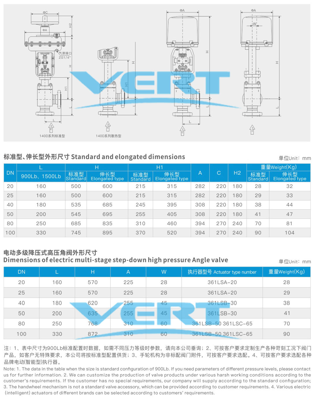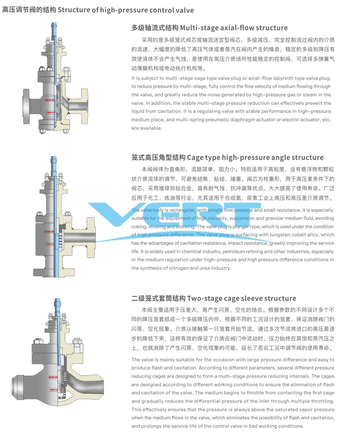The series of top-guide type high-pressure regulating valve produced by the company is subject to sleeve guide, pressure balanced valve plug.The series of regulating valves are mainly suitable for the situation of large pressure difference and flash and cavitation.The valve can be designed in a variety of structures, with a diameter of DN 20~ DN200mm, and a maximum pressure range of 2500LB.It can be equipped with a variety of specif cations of electric actuators.